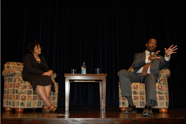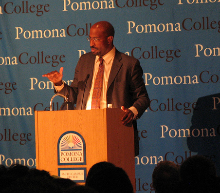On January 26, 2011, I attended two talks led by Van Jones, founder of Green For All, in Rose Hills Theater and Edmunds Ballroom at Pomona College. A very inspiring and witty speaker, Mr. Van Jones introduced some of the challenges the country is facing in regards to our economic and environmental future. In the main talk in Edmunds, he asserted that we were in both environmental and economic peril and that there is no clear path in getting out. Environmentally, we face the challenge of global warming and an energy crisis while economically we are at risk for experiencing higher rates of unemployment. Given, he acknowledged there would be challenges to follow and a lot of experimentation, he suggests that we take the following five steps: invest in renewable energy, establish a green bank, defend the EPA, utilize energy resources on tribal lands through partnerships, and create a green enterprise zone. He brushed over the surface of each and I hoped that he would have explained his suggestions in a little bit more detail because I see problems with options three through five.