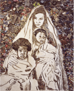 In many respects, I was skeptical of this film and whether or not it was just functioning to exploit/romanticize the thriftiness of these people. I questioned whether the filmmaker or Vik Muniz realized their privilege when entering this space and how this film can be used as a teaching tool. For instance, towards the end Muniz ends up photographing the pickers, creating large-scale portraits of them, selling them at auction and giving all the proceeds raised back to the pickers so they could improve their lives. While the motive came from a good place, I wondered if it was really okay to introduce these people to a different lifestyle and then just return them back to the dump. Would it potentially make them feel even more trapped?  The instance that caused me to lose my skepticism was toward the end of the film when one of the women who had participated explained how the experience made her feel. She said, “sometimes we see our selves as so small but people out there see us as big, so beautiful.” In this statement, I realized that it did not matter whether these outsiders were able to offer her a long time solution or any solution.  The fact that she could now be acknowledged by the world for her life, for her work, and as something that was human was something that was both gratifying and validating for her.