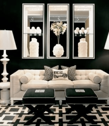 Bling-a-bling-bling! Other things that can really enhance a black room is its accessories. I am a firm believer that mirrors and lighting can make or break a room. Metallics in general can be contemporary. Whether you agree with me or not such things can add functionality by work to brighten the space as well as a bit of elegance. Organic textures like pieces out of wood or basketry can spin it in an entirely different direction When in doubt rugs, artwork, and good old books are awesome investment too! The possibilities are endless.