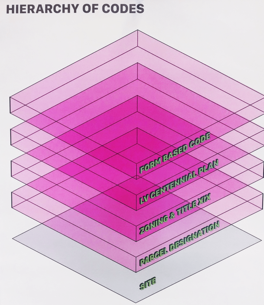 Red tape can become complicated, appear contradictory, and cause confusion. In our initiative to design a food hub in downtown Las Vegas  we’ve discovered three primary levels of ordinances and codes: zoning and land use, the city’s centennial plan, and form based codes. When to use which one and what trumps the other, we’re common questions that arose.